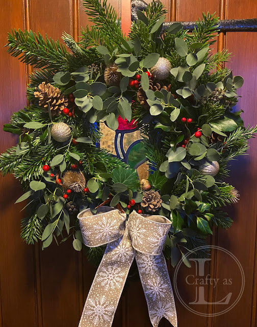 This week’s blog post is a little late due to that pesky Covid. I was going to do a post on a fun decoration I’d made as gifts for a couple of friends but have been unable to deliver them due to being suddenly upgraded (or is that downgraded?!) to Tier 4, which is essentially another lockdown. Since the recipients don’t have their gifts, I can’t post about them! So instead, I’m focussing on Christmas tree decorations. First though, I finally got my wreath made for the front door.